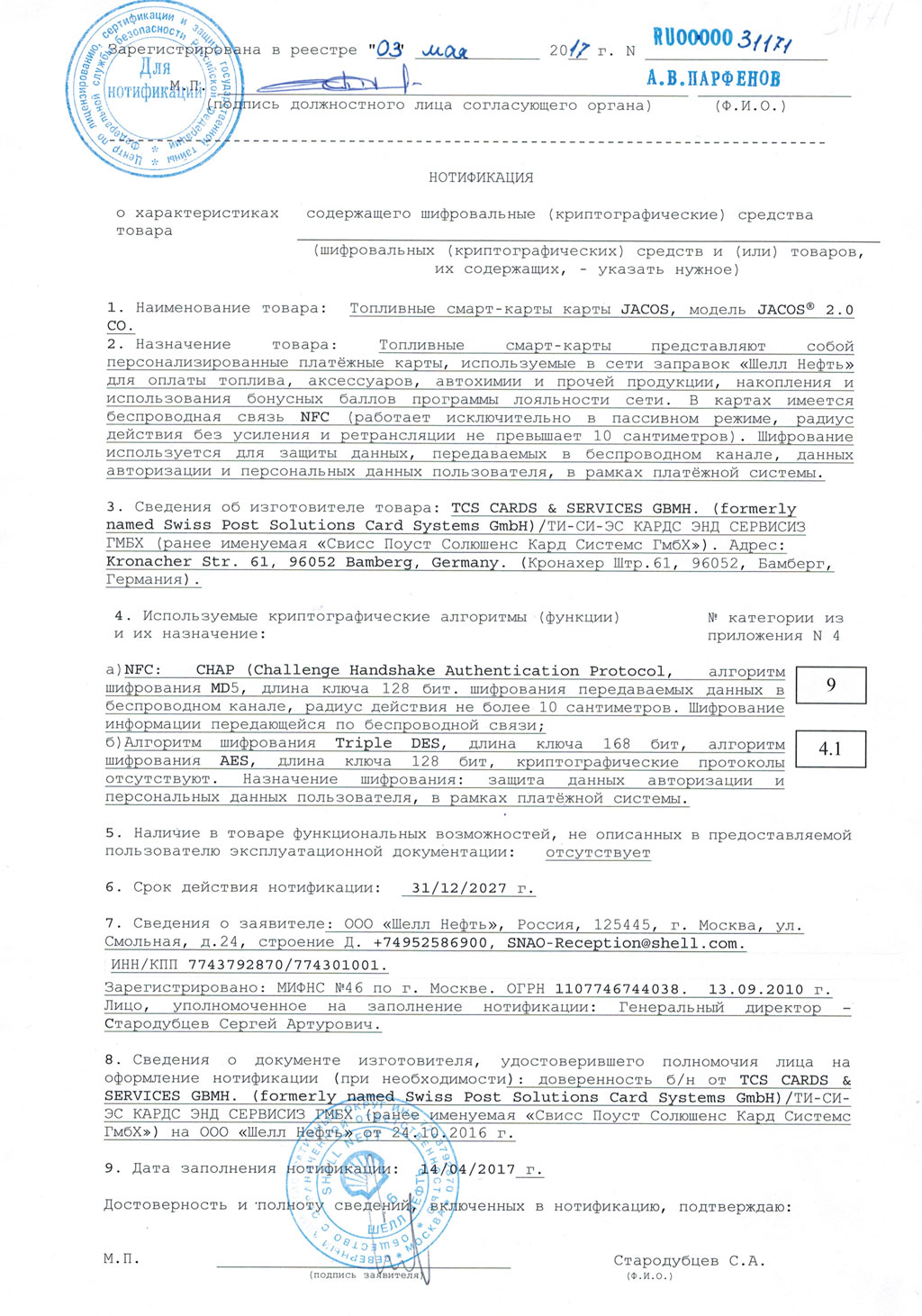 Сведения обо всех зарегистрированных нотификациях вносятся в официальный реестр нотификаций о характеристиках шифровальных (криптографических) средств и товаров, их содержащих и доступны по ссылке.