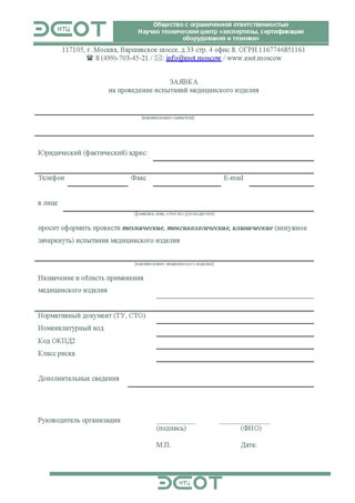 Перечень документов, необходимых для проведения испытаний медицинских изделий: